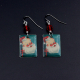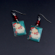 These earrings were made out of vintage Christmas seals, the real thing. They are mounted to decorative tin and have a protective coating. They have been filed, so no sharp edges. The earwires are surgical steel/hypoallergenic.