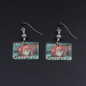 These earrings were made out of vintage Christmas seals, the real thing. They are mounted to decorative tin and have a protective coating. They have been filed, so no sharp edges. The earwires are surgical steel/hypoallergenic.