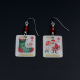These earrings were made out of vintage Christmas seals, the real thing. They are mounted to decorative tin and have a protective coating. They have been filed, so no sharp edges. The earwires are surgical steel/hypoallergenic.