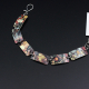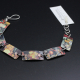 The hand cut decorative tin was riveted to silver plated tray pieces. It's all been filed, so no sharp edges. The lobster clasp and links are sterling silver. It's 7 inches, but if you need it longer, let me know, and I will add more silver links.