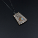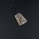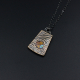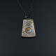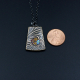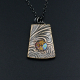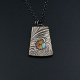This copper pendant has enameled millefiori as a focal point. The pendant is layered copper and vintage silver plated tray. It measures approx. 3/4 inches wide and 1 1/8 from top to bottoom. The metal is hand cut and filed, so no sharp edges. The chain is oxidized sterling silver and measures 18 inches.