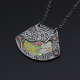 This pendant necklace was made using recycled metals. The sweet yellow, red and white flowers are from a vintage decorative tin, which was cut and sandwiched between pieces cut from a vintage silver plated tray. The three layers are riveted together with copper and an antique finish was applied. The 18 inch chain is sterling silver with an antique finish.