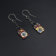 These earrings were crafted out of a beautiful red tin that i rivited onto pieces from a silver tray. One of the photos shows the backs. The chain and handmade earwires are sterling.