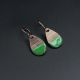 These were torch enameled on old copper pennies that I cut into tear drop shapes. The hand made earwires are copper.