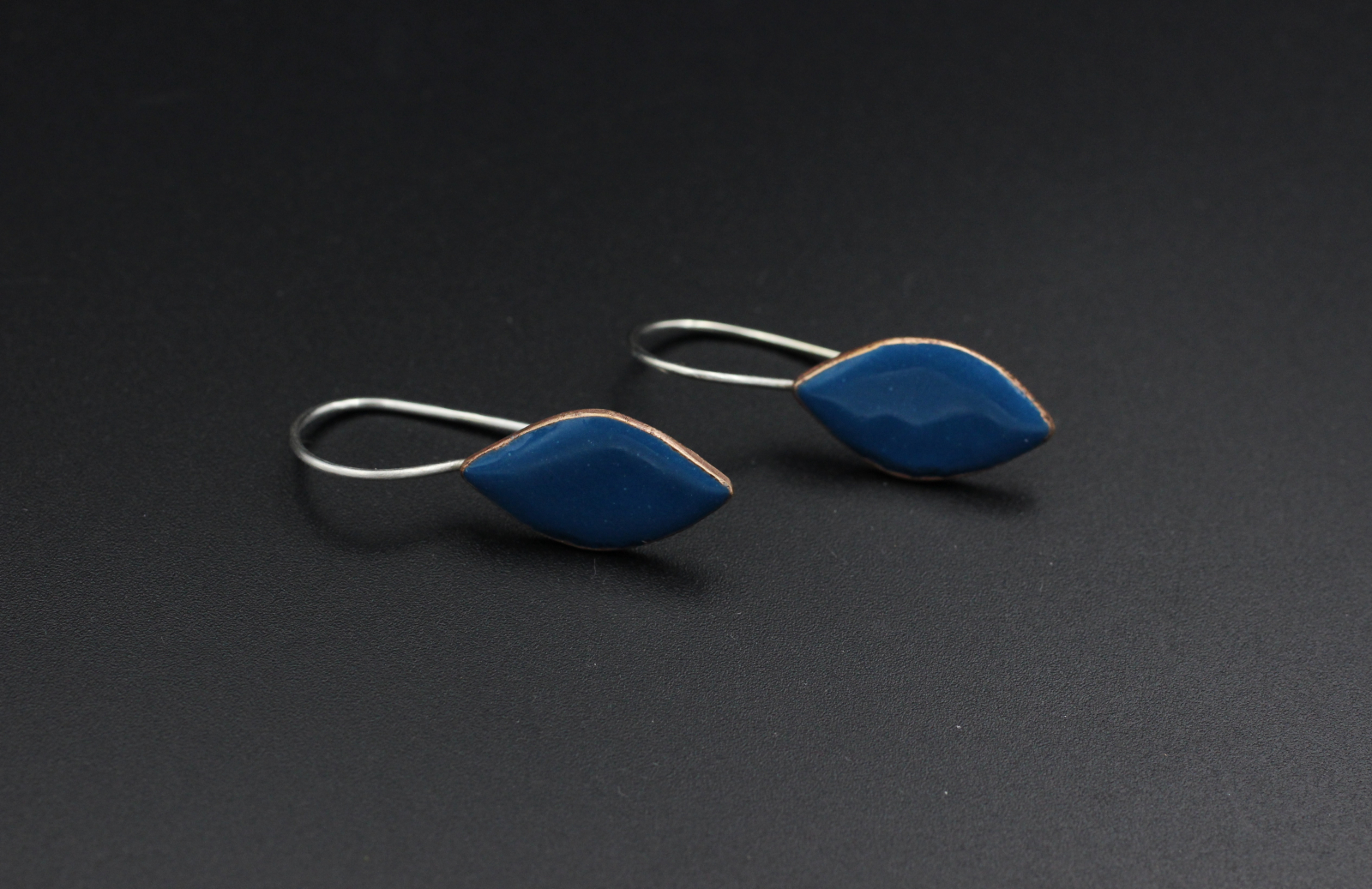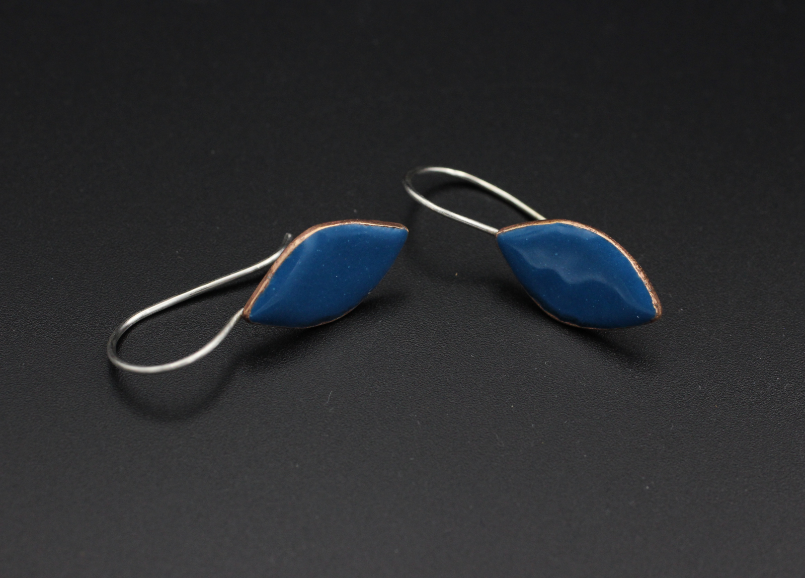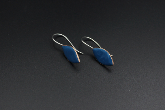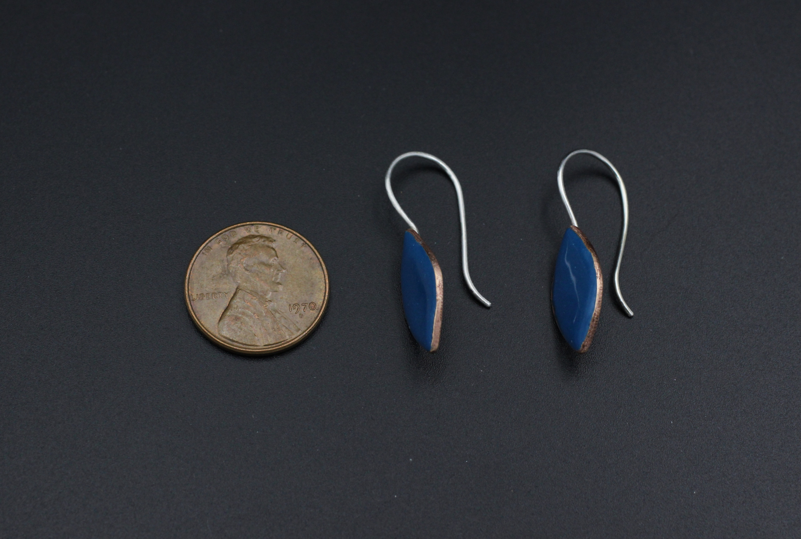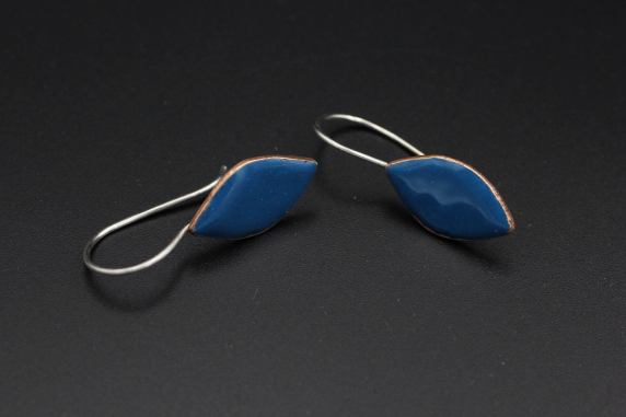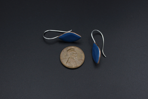 These are cut pennies that have been torch enameled. The sterling silver ear wires are soldered to the copper.