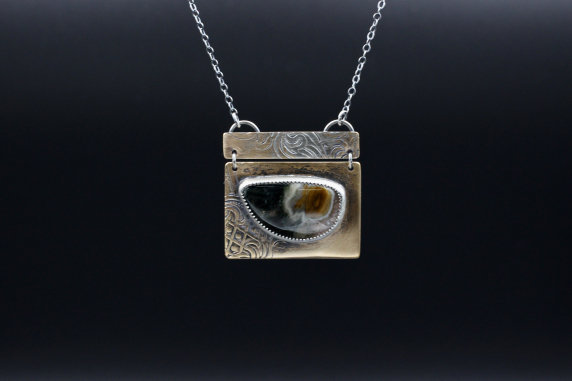 Ocean Jasper Stone Pendant with Silver and Copper