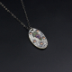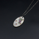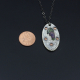 This pendant was created with a silver tray. There are three layers that are riveted together. The center layer was hand painted and has a resin coating. The chain is 20" and silver filled.