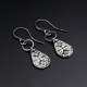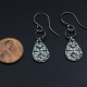 These earrings were made out of a decorative tin that I riveted to a hand cut piece of silver tray. The circles and earwires are antiqued sterling silver.