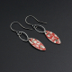 These earrings were made out of a decorative tin that I riveted to a hand cut piece of silver tray. The pieces are filed, so no sharp edges. The ovals and earwires are sterling silver that I've antiqued.