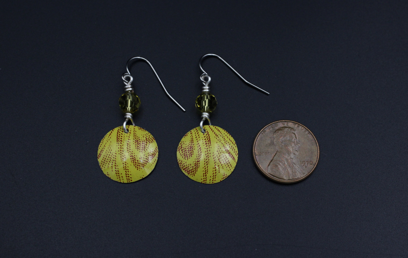 These earrings were made out of a decorative tin. They are hand cut and filed, so no sharp edges.