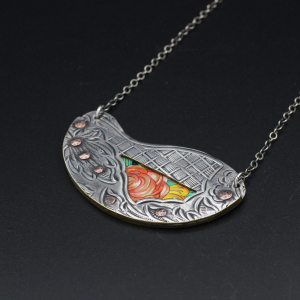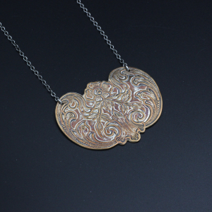 Copper Etched Necklace from Recycled Silver Plated Tray